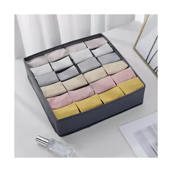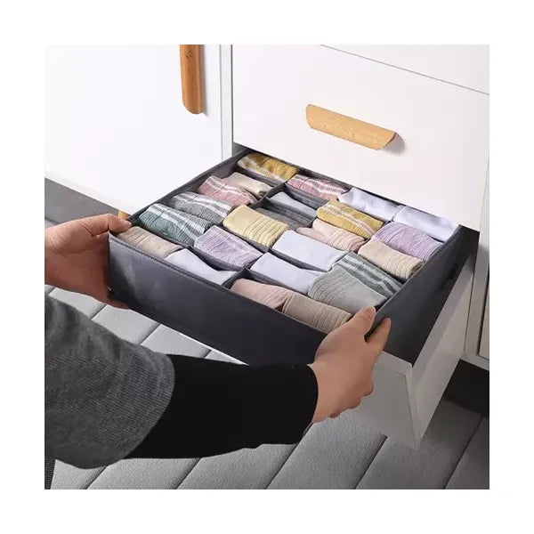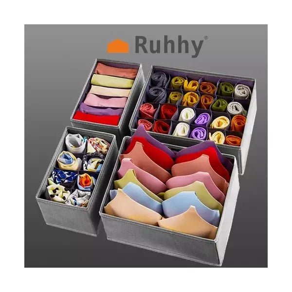 A 4 darabos, szürke fehérnemű- és fiókrendező szett segít, hogy a zoknik, melltartók és alsóneműk átláthatóan, higiénikusan legyenek tárolva. A légáteresztő, nemszőtt anyag kartonnal merevített oldalfalai stabil tartást adnak, a betétes konstrukciónak köszönhetően pedig pillanatok alatt kihajtható és használatra kész.