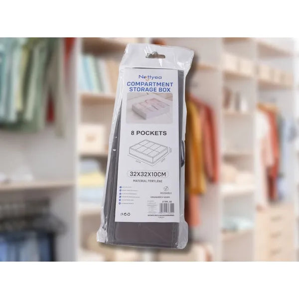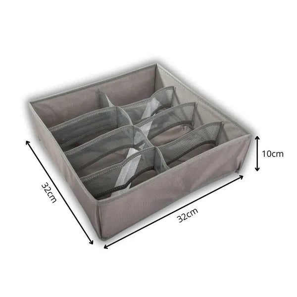 Fehérnemű rendező fiókbetét 8 rekesszel, 32×32×10 cm, szürke