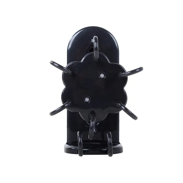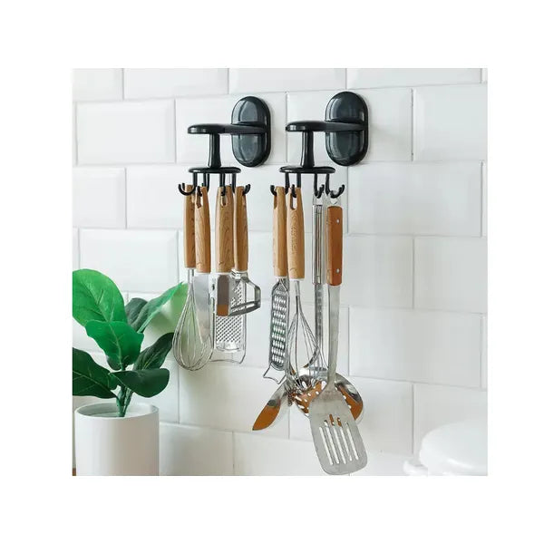 A 360°-ban forgatható, 8 karos, öntapadós konyhai–fürdőszobai akasztó praktikus megoldás az állandóan kéznél lévő eszközök rendezett tárolására. Masszív műanyagból készült, fekete színével bármilyen modern enteriőrbe illik, használatával helyet és időt takaríthat meg.