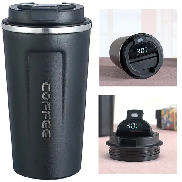 Fekete 510 ml rozsdamentes termoszbögre LCD hőmérséklet-kijelzővel