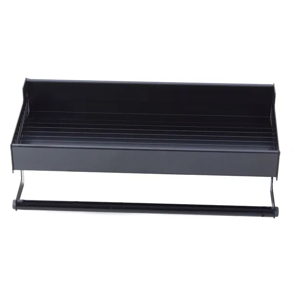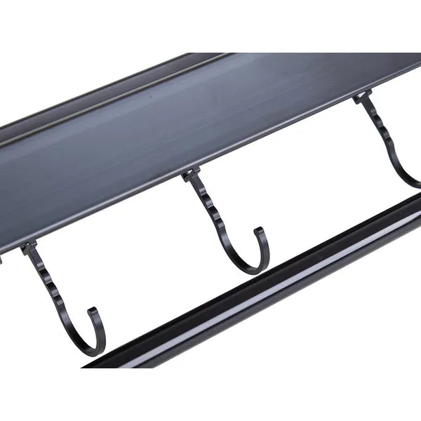 Fekete alumínium fali konyhai fűszertartó polc, akasztókkal, 30×13 cm