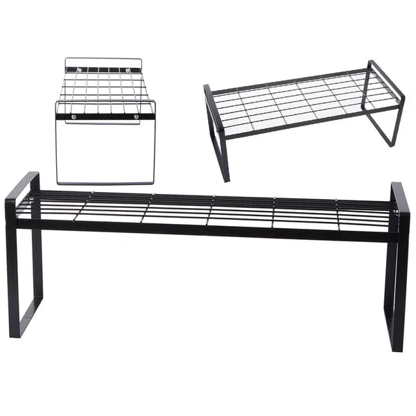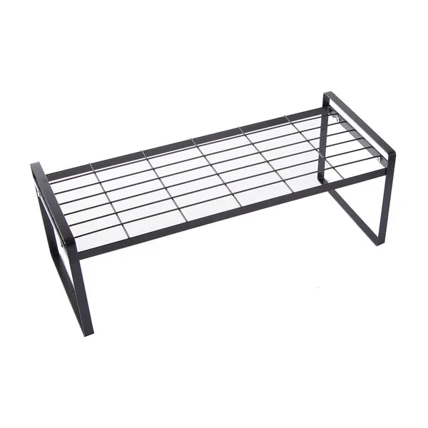Az egyszintes, fekete fém konyhai rendszerező polc segít kihasználni a szekrények, pultok és polcok kihasználatlan területeit, hogy a fűszerek, bögrék vagy kisebb edények mindig kéznél legyenek.