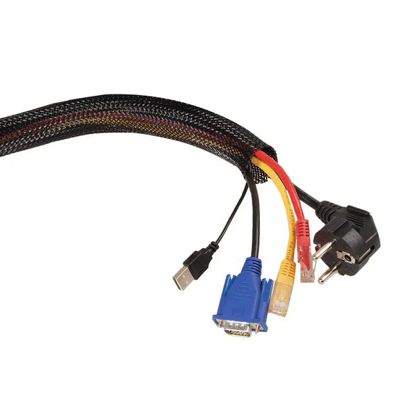 - Rugalmas poliészter fonat – könnyen nyúlik, így többféle vastagságú vezeték is elfér benne.