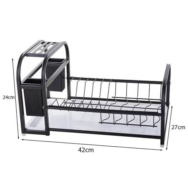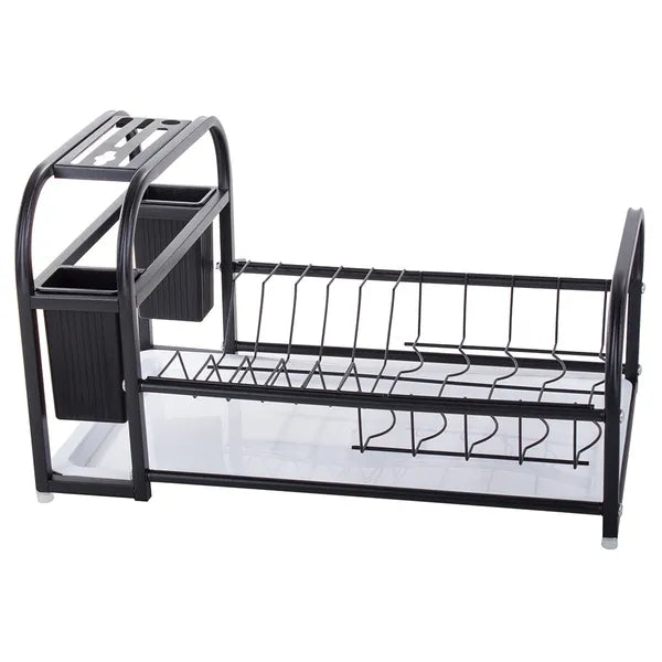 Fekete loft fém edényszárító vízgyűjtő tálcával, 42×27×24 cm