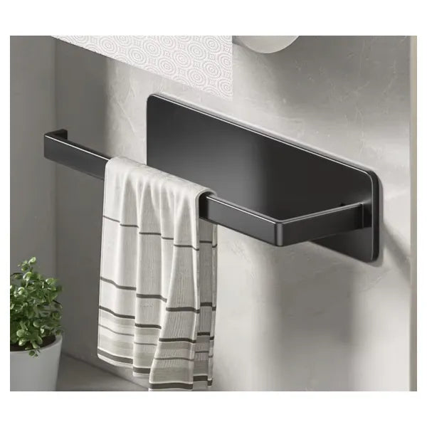 Fekete loft fém papírtörlő tartó ragasztós rögzítéssel, 25×7×4,8 cm