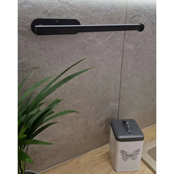 A fekete matt felületű, masszív fémből készült papírtörlő tartó segít rendezetté és tágassá tenni a konyhapultot. Fúrásmentes 3M kétoldalas ragasztócsíkkal vagy csavarokkal egyaránt felszerelhető szekrény alá vagy falra, így néhány perc alatt használatba veheted.