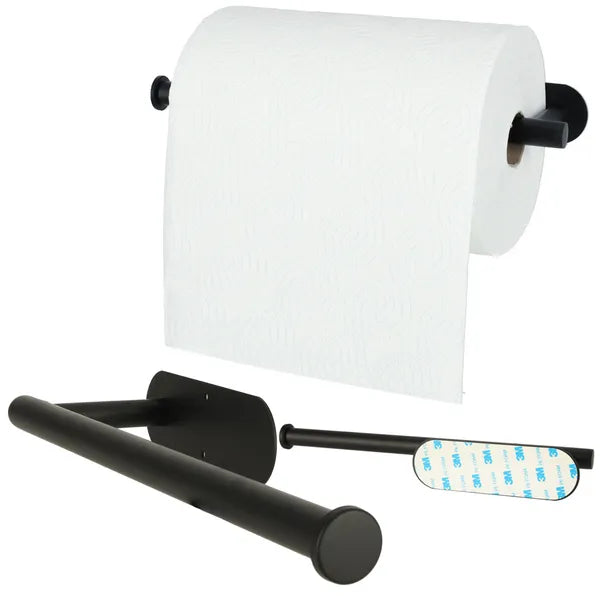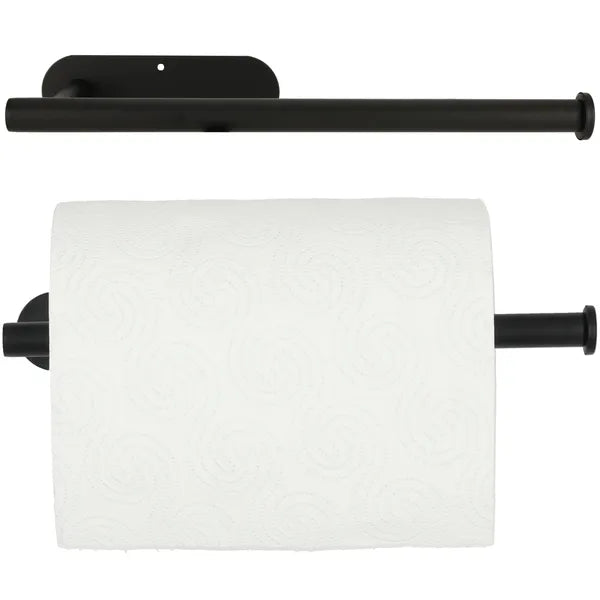 Fekete matt fém konyhai papírtörlő tartó 3M ragasztóval, fúrás nélküli