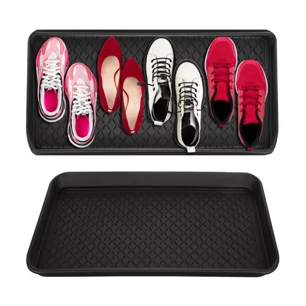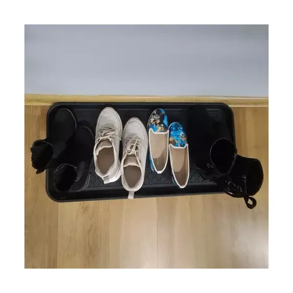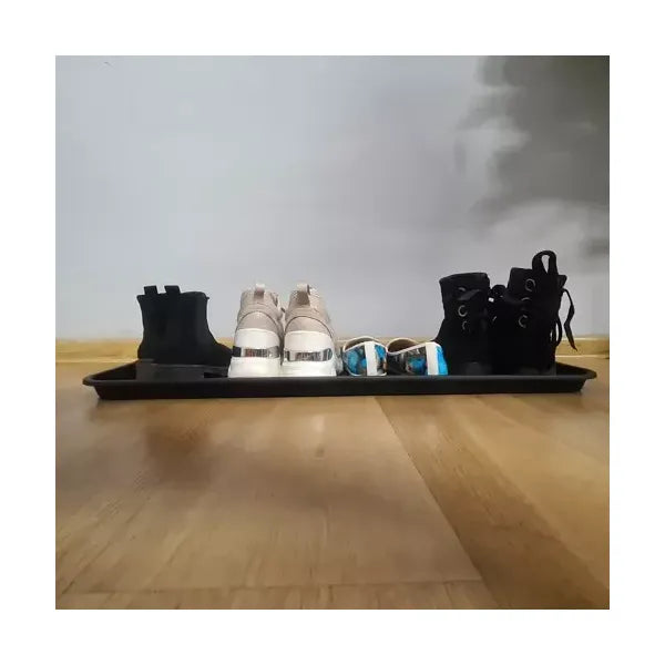Fekete műanyag cipőtálca nagy, 75,5×38 cm, magas perem, 4 párhoz