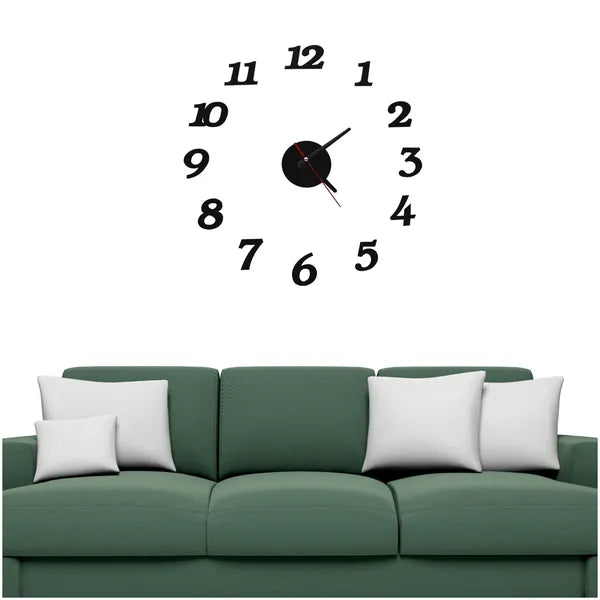A DIY ragasztható fali óra modern, minimalista megjelenésével azonnal életet visz nappalidba, irodádba vagy üzletedbe. A fekete szín minden falszínhez illik, a számlap méretét pedig Te határozod meg 70 cm és 130 cm átmérő között.
