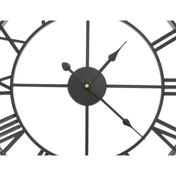 Fekete retro falióra, 47 cm, fém keret, római számok