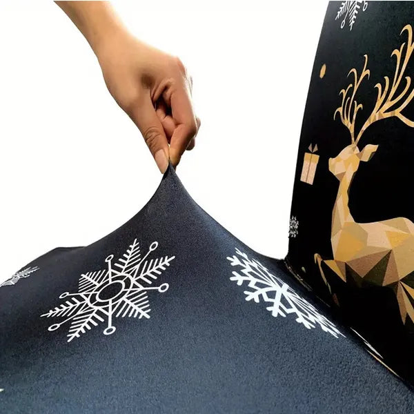 Dobd fel étkeződ hangulatát ezzel a fekete, velúrhatású, rénszarvas mintás szék huzattal, amely ünnepi megjelenést kölcsönöz és védi a kárpitot a koszolódástól.
