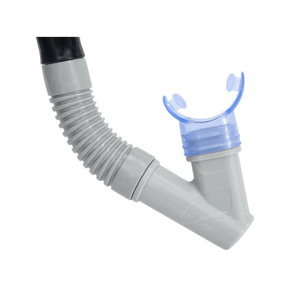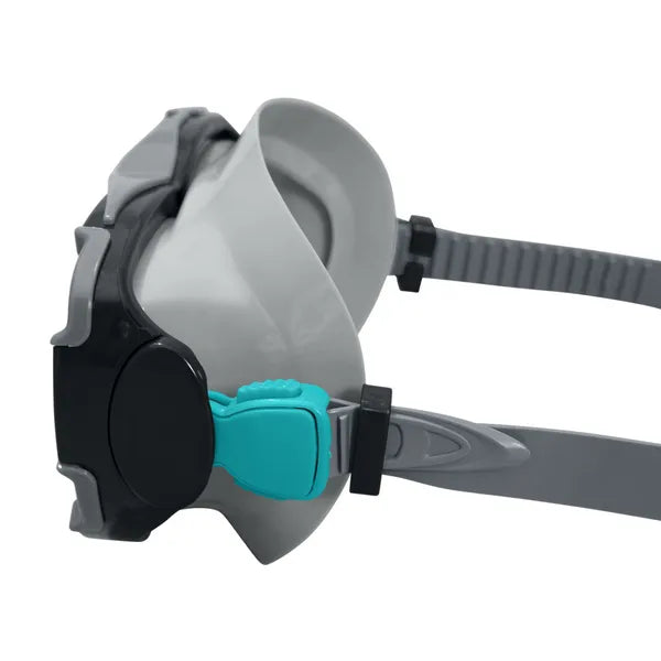A kontúrozott szilikon tömítés tökéletesen illeszkedik az arc vonalához, megakadályozva a víz bejutását. A fröccsenésgátló felső rész csökkenti a hullámok okozta vízbefolyást, míg a beépített szelep megkönnyíti a maszk víztelenítését.