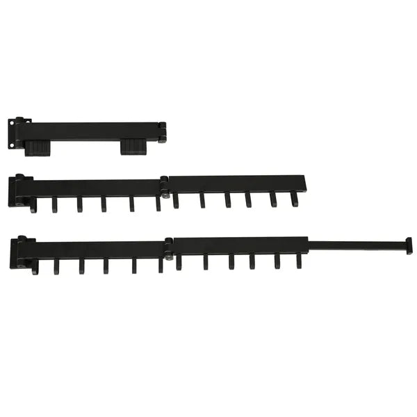 Fekete teleszkópos, falra szerelhető ruhaszárító 12 akasztóval, 90 cm