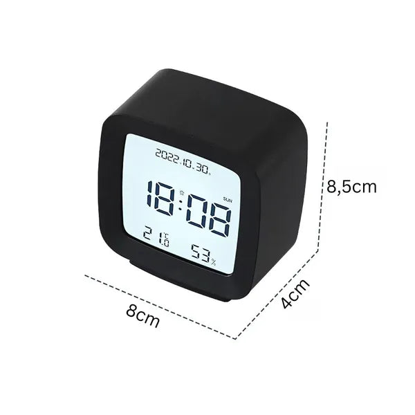 A kompakt, vezeték nélküli LCD ébresztőóra egyszerre mutatja az időt, a dátumot, valamint a szobahőmérsékletet és a relatív páratartalmat. A modern, fekete dizájn bármilyen hálószobában vagy irodában megállja a helyét, a beépített szundi pedig gondoskodik róla, hogy soha ne késsen el.