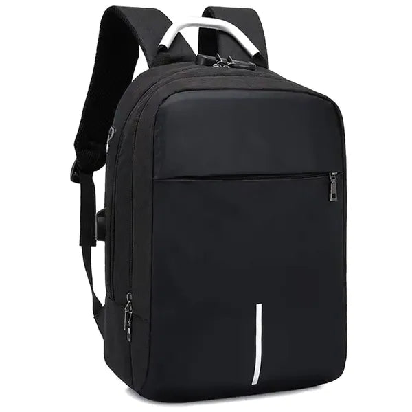 Fekete vízálló lopásgátló laptop hátizsák, USB-A port, 15,6″