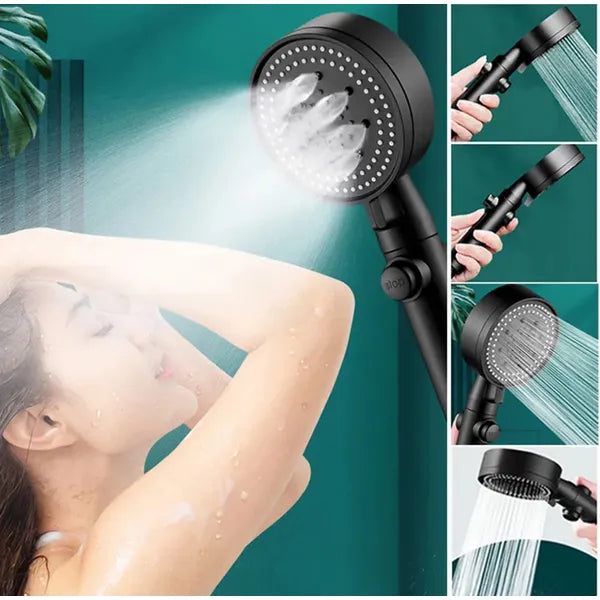 Fekete zuhanyfej 5 funkcióval, STOP áramlásgátlóval, ABS, 25,5 cm