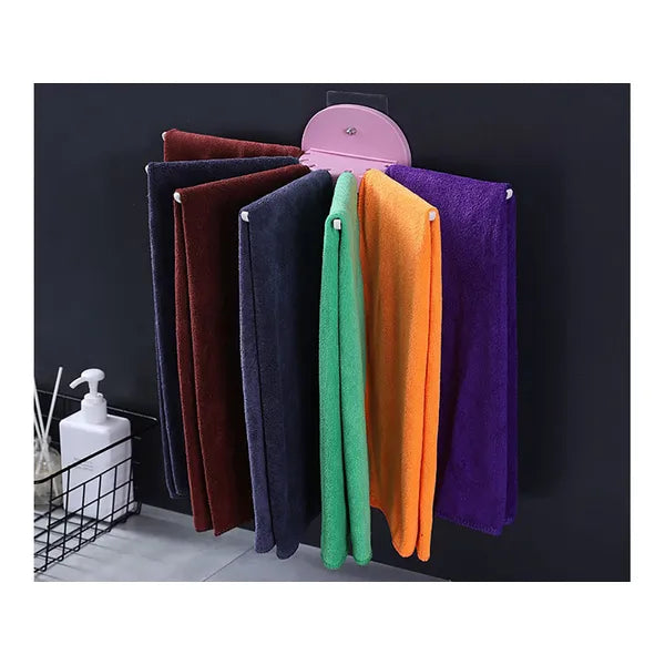 Felcsukható 7 karú törölköző- és konyharuha tartó, öntapadós, rózsaszín