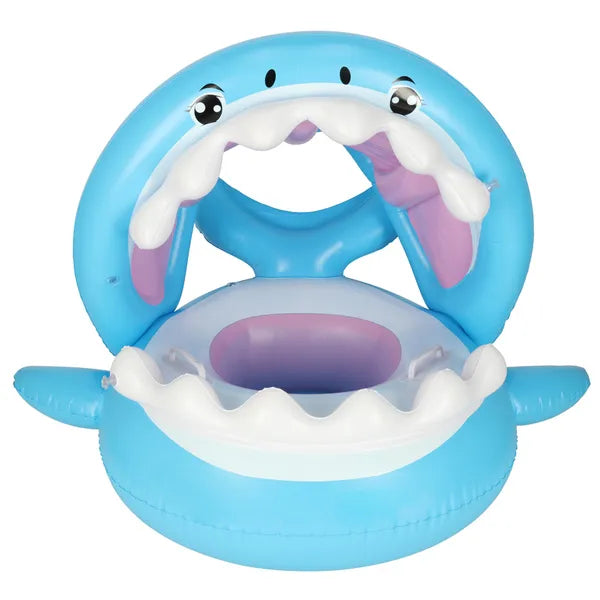 Eljött a vízi kalandok ideje: a cápás, felfújható babaponton biztonságos és kényelmes módon segít megismertetni a legkisebbeket a vízzel. A levehető napellenző óvja a bőrt az UV-sugaraktól, míg a puha, ülőkés kialakítás lábnyílásokkal stabil tartást ad, hogy a kicsi csak a pancsolás örömére figyeljen.