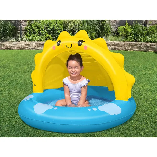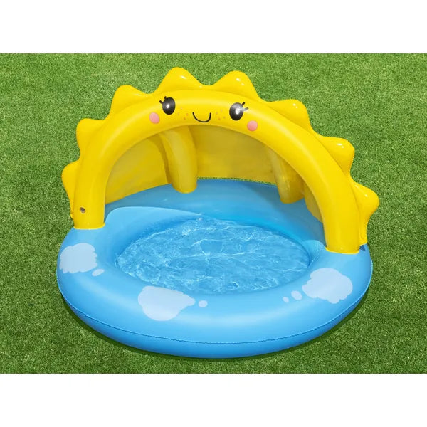 Válaszd ezt a vidám, napocskás mintájú medencét, hogy a forró nyári napok biztonságos pancsolással és önfeledt nevetéssel teljenek!