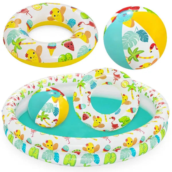 Felfújható gyerekmedence szett 122 cm – labda és úszógumi