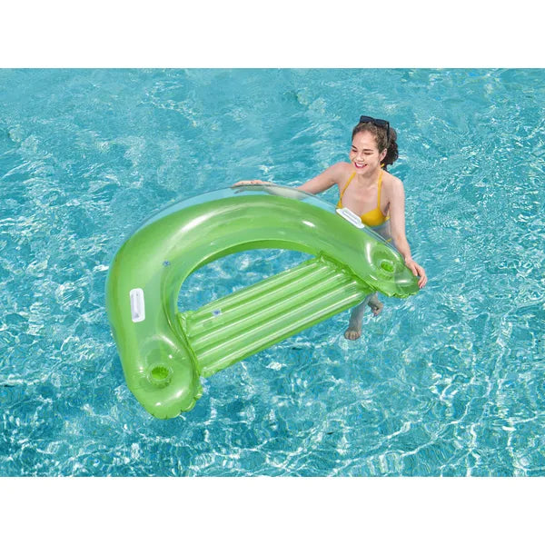 Készülj fel a gondtalan lebegésre a medencében vagy a tavon ezzel a tágas, 152 × 99 cm-es felfújható fotellel, amely 90 kg-os teherbírásával biztonságos kényelmet nyújt fiataloknak és felnőtteknek egyaránt.
