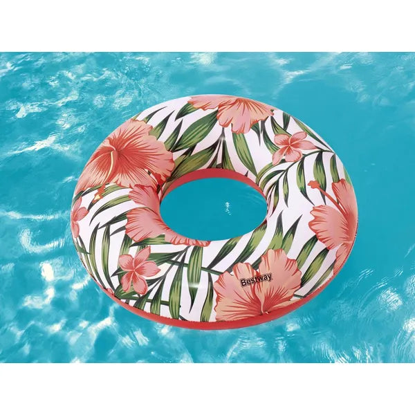 Szeretnél gondtalanul lebegni a medencében vagy a tenger hullámain? A 119 cm átmérőjű, trópusi virágmintás úszógumi élénk színeivel és kényelmes méretével garantáltan vonzza a tekinteteket és segít ellazulni a forró nyári napokon.