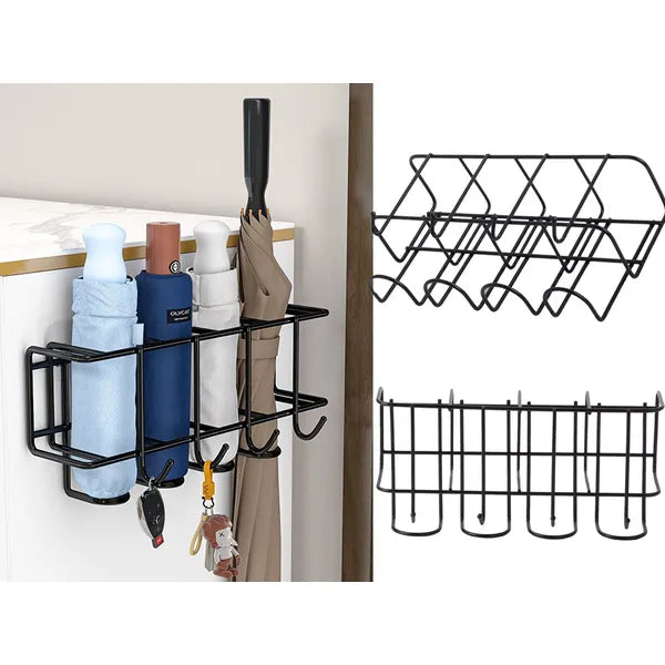 Fém, falra ragasztható esernyőtartó 4 esernyőhöz, 4 akasztóval