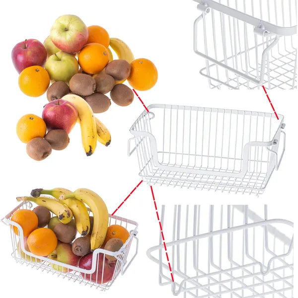 Legyen szó almáról, citrusfélékről vagy friss zöldségekről, ebben a fém kosárban ízlésesen kínálhatod családod és vendégeid számára a vitaminokban gazdag finomságokat, miközben rendet és stílust viszel a pultodra.