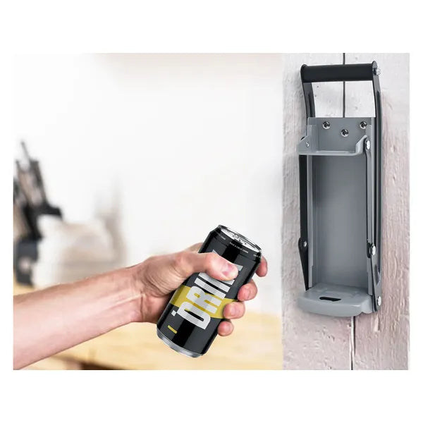 A falra szerelhető fémdoboz-prés segítségével pillanatok alatt akár 17 cm magas alumínium italosdobozokat lapíthat 90 %-kal kisebbre, így értékes helyet szabadíthat fel a szelektív hulladékgyűjtőben.