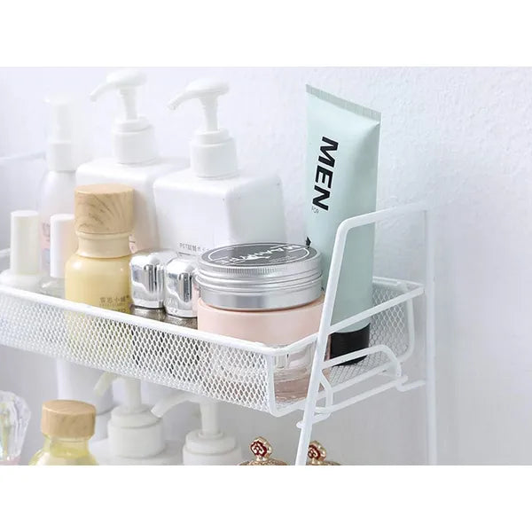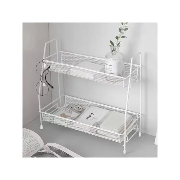 A kétpolcos, fehér fém konyhai polc loft stílusú megjelenésével rendezetten és igényesen tartja fűszereidet, alapanyagaidat vagy akár a fürdőszobai kozmetikumaidat.