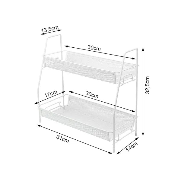 Fém kétpolcos konyhai fűszertartó polc, fehér, 31x17x32,5 cm