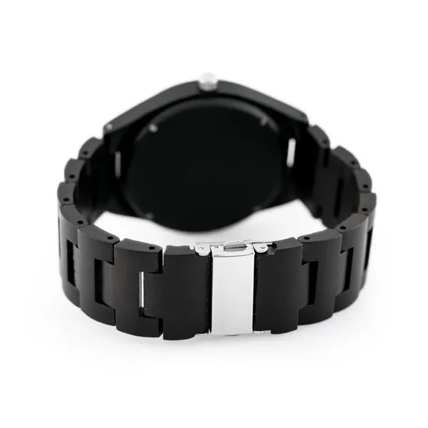 - Tömör fa tok, számlap és szíj – természetes, allergénmentes anyagok