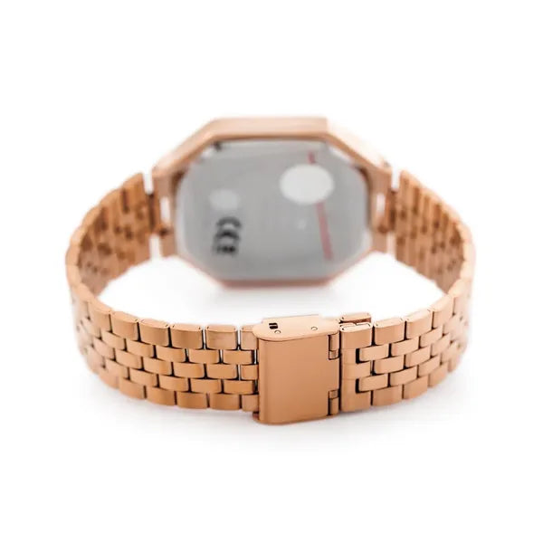 Férfi LED karóra rozéarany fém szíjjal, fekete kijelző, WR30