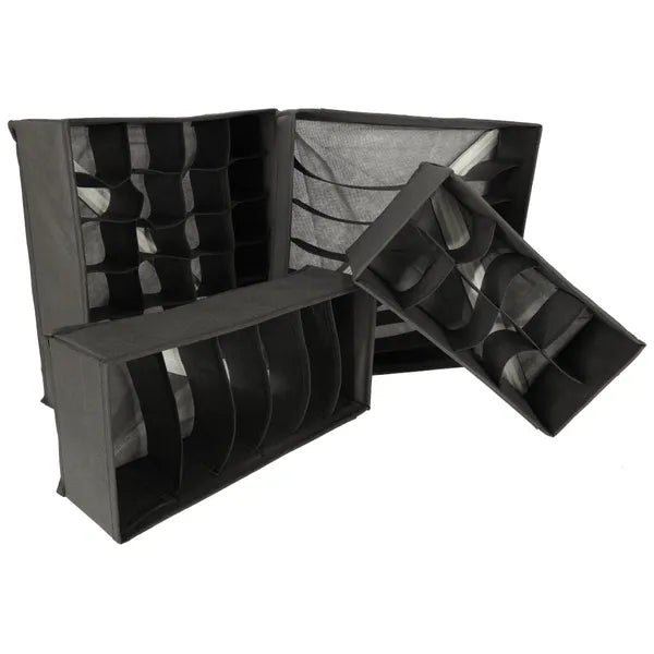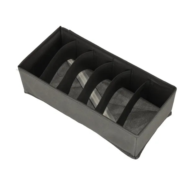 Unod már, hogy a fehérnemű, zokni és kiegészítők kaotikusan hevernek a fiókban? A 4 részes rekeszes fiókszervező szett rendezetté és könnyen áttekinthetővé teszi ruhatáradat. A puha, mégis merevített falú szürke vlies anyag hosszú távon tartást ad, miközben megóvja a finom textileket a gyűrődéstől.