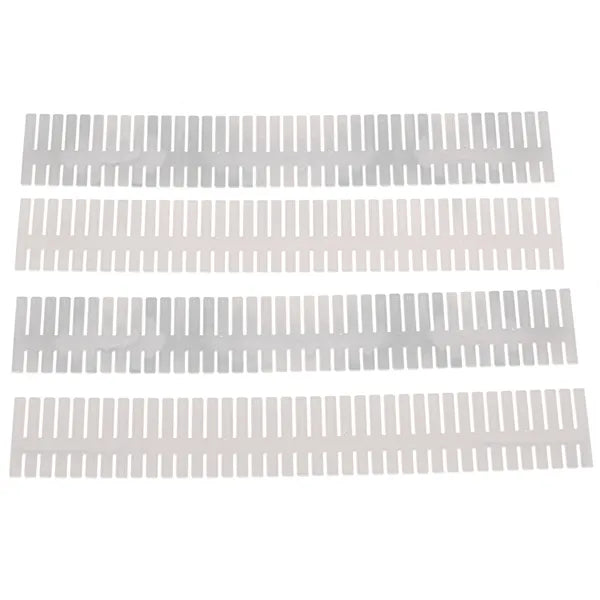A műanyag elemek 47 cm hosszúak és 7 cm magasak, így a legtöbb szabványos fiókba illeszkednek. A perforált kialakításnak köszönhetően egyszerűen méretre vághatók, majd az illesztő nyílásokon keresztül egymásba pattinthatók.