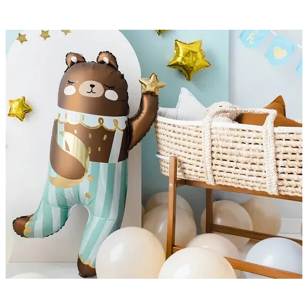 Használd asztaldíszként, fotóháttérként, ajtóra vagy ajándék mellé kötve; a maci lufi minden alkalmat barátságossá varázsol.