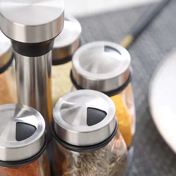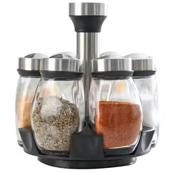 A stílusos, 6 részes forgatható fűszertartó állvány segítségével mindig kéznél lesznek a kedvenc fűszereid, ráadásul elegáns kiegészítője lesz bármely konyhának. Az átlátszó, 120 ml-es üveg edények és a rozsdamentes acél fedők pontos adagolást és hosszú élettartamot biztosítanak.