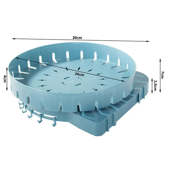 Méretek: polc átmérője 26 cm, kosármagasság 4 cm, teljes magasság 7 cm, mélység 30 cm.