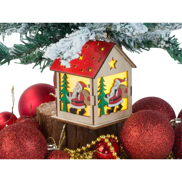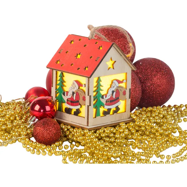 Hozd be a karácsony meghitt varázsát otthonodba ezzel a kézzel készült, természetes fából gyártott lámpással, amely finom csillag- és Télapó motívumain át szórja a meleg fényű LED világítást.