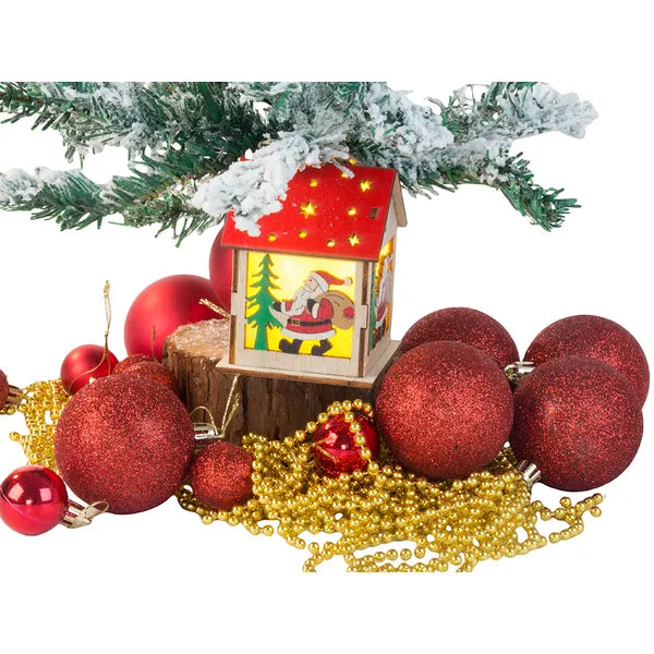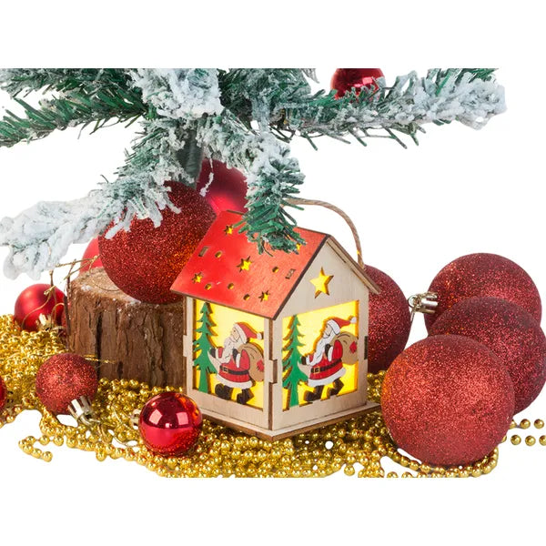 Függeszthető fa LED karácsonyi lámpás, meleg fény, 9×7 cm