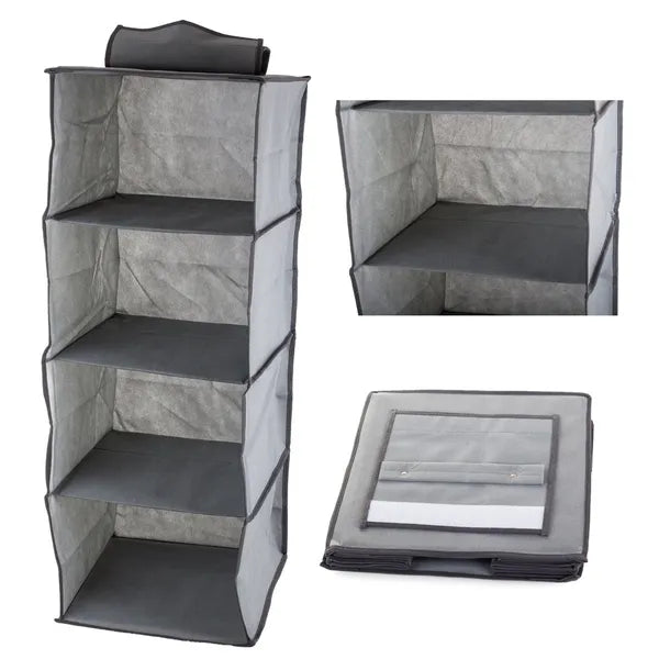 Függő ruhásszekrény rendező polc, 4 szintes, 30×30×80 cm, szürke