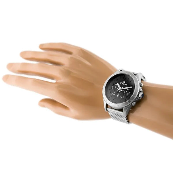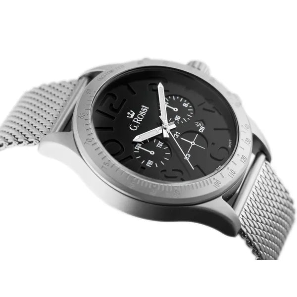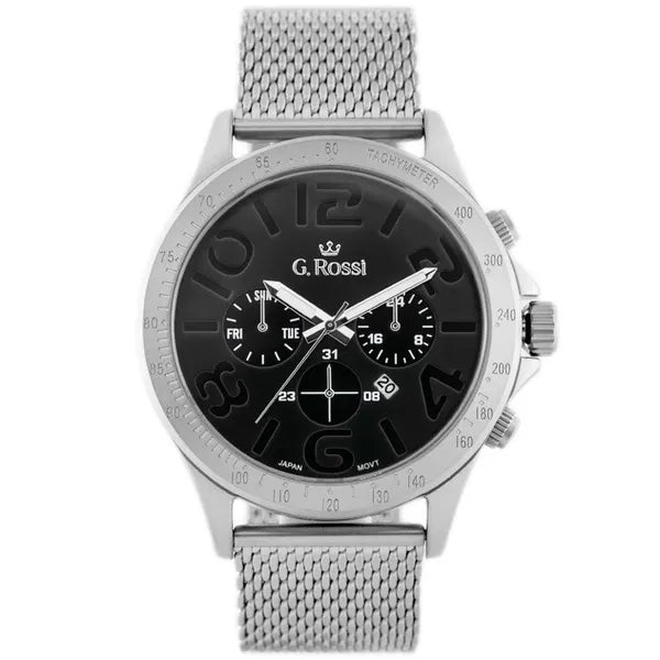 G. Rossi férfi karóra, fekete számlap, matt ezüst fém szíj, dátum, WR30