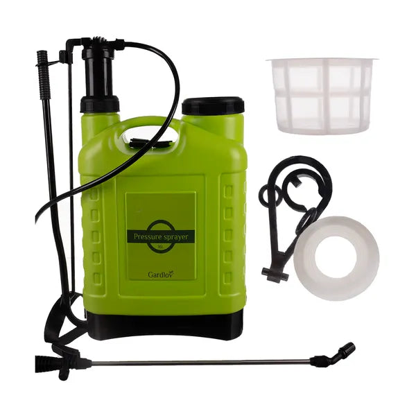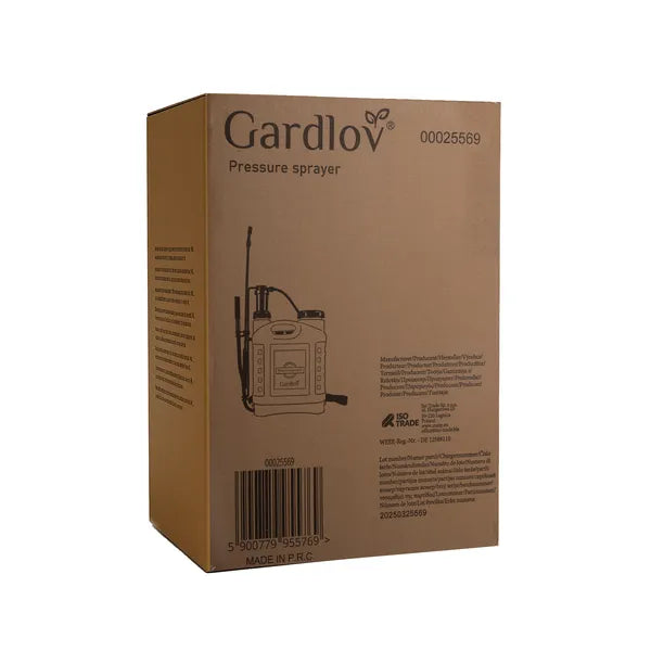 A Gardlov 16 literes kézi nyomáspermetező ideális választás kerti növényvédelmi feladatokhoz, házi zöldség- és gyümölcságyások, dísznövények, valamint kisebb üvegházak kezeléséhez. Strapabíró, UV-álló HDPE tartálya hosszú élettartamot biztosít, miközben a kézi szivattyú gyorsan felépíti a szükséges üzemi nyomást.