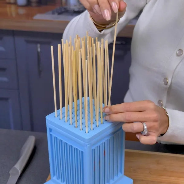 Legyen szó gyors hétköznapi vacsoráról vagy nagyszabású kerti partyról, ezzel a praktikus eszközzel látványos, egyforma nyársakat szolgálhatsz fel, amelyek egyenletesen sülnek és könnyebben forgathatók a grillen.