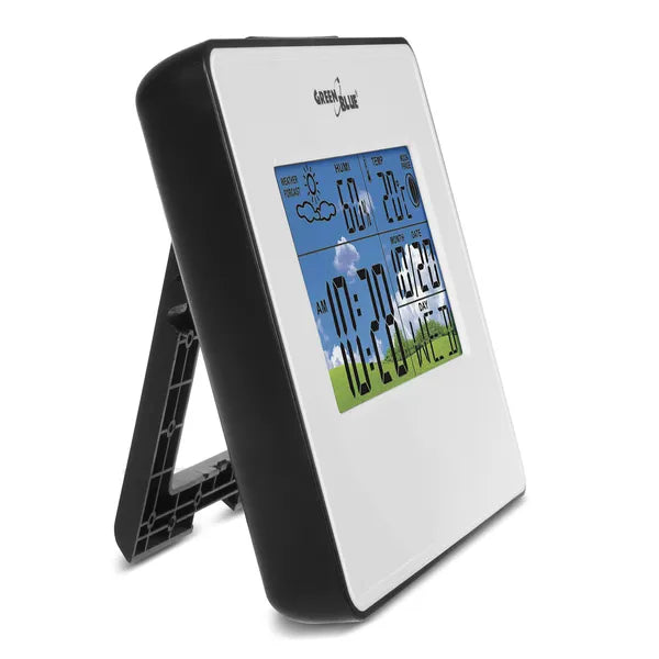 A GreenBlue GB148W otthoni időjárás-állomás segítségével pillanatok alatt áttekintheti a beltéri környezet főbb adatait. A színes, könnyen olvasható kijelzőn nemcsak az aktuális hőmérséklet és páratartalom jelenik meg, hanem egy grafikus előrejelzés, a pontos idő, a dátum és a holdfázis is. A letisztult fehér ház bármilyen enteriőrbe illik, a készüléket pedig a mellékelt támasztékkal polcra teheti vagy a falra akaszthatja.