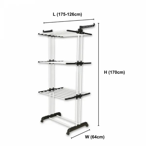 Gurítható, összecsukható 6 polcos ruhaszárító állvány, fekete-fehér, 170 cm