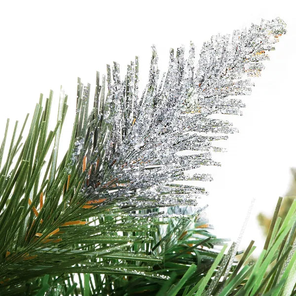 - Anyagok: tartós, két tónusú zöld-barna PVC fólia a hiteles tűlevélhatásért, hófödte és csillámfényű tip-végek.