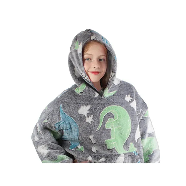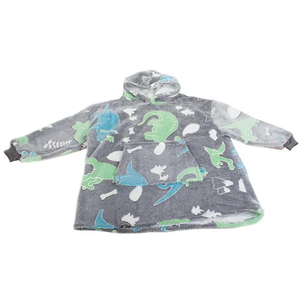 Gyerek meleg kapucnis takaró-pulóver, fluoreszkáló dinoszauruszos, uniszex