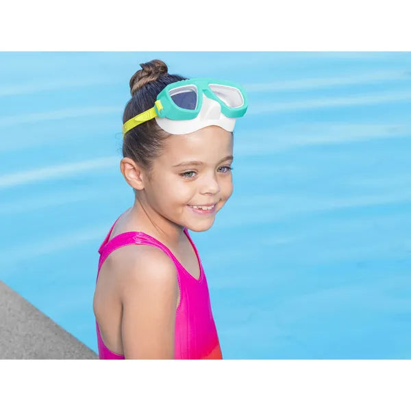 A zöld gyerek úszó- és búvármaszk ideális választás minden kis kalandor számára, aki szeretné felfedezni a medence vagy a tenger élővilágát. A tartós polikarbonát lencsék UV-szűrővel rendelkeznek, így védenek a napsugárzás káros hatásaitól, miközben széles látómezőt biztosítanak. A puha, latexmentes szilikonpánt és a kettős peremű szoknya vízmentes, kényelmes illeszkedést nyújt, az állítható csat pedig gyorsan igazodik a fejmérethez.