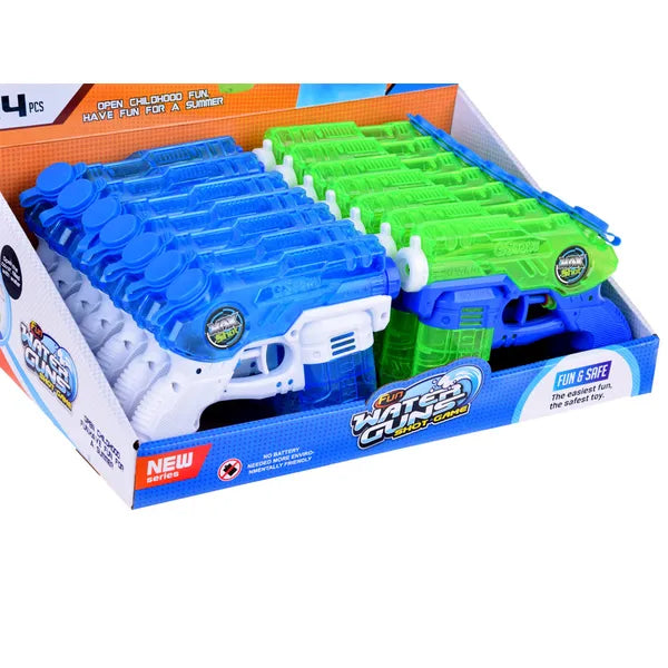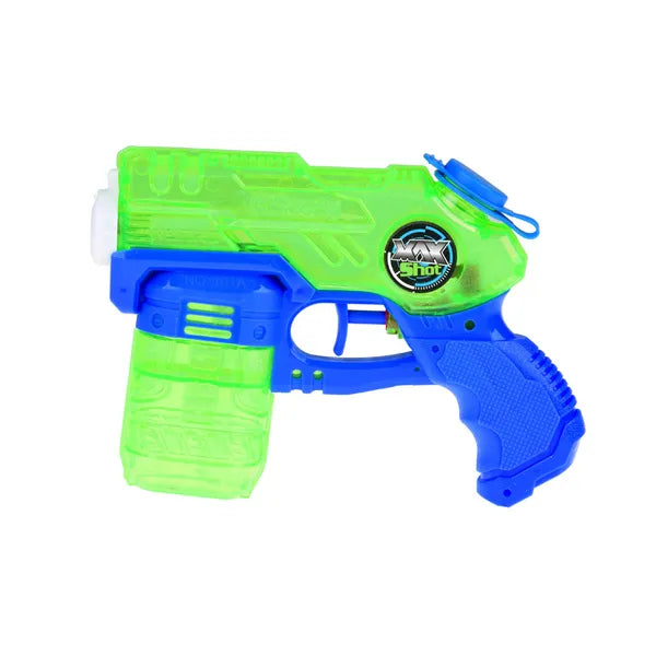 A 18 cm-es gyerek vízipisztoly a forró nyári napok legjobb fegyvere, legyen szó kerti csatáról, strandi hancúrozásról vagy húsvéti locsolkodásról. Könnyű műanyag kialakítása miatt még a kisebbek is gond nélkül kézben tarthatják.